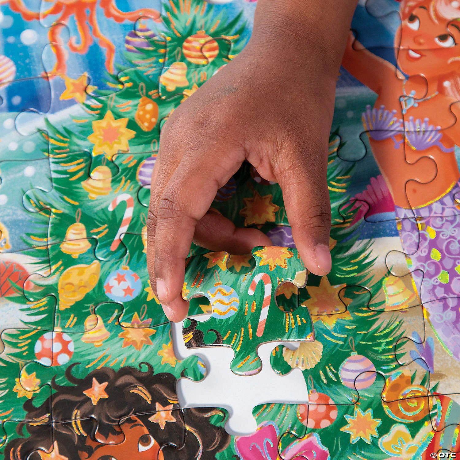 A perfect indoor activity for home or classroom, these durable puzzles provide fun that stands up to years of play!• Completed puzzles measure 19″ x 14″• Kids learn visual recognition while developing fine motor, problem solving and critical thinking skills• Includes Festive Mermaids & Holiday Dinosaur 100 piece puzzles