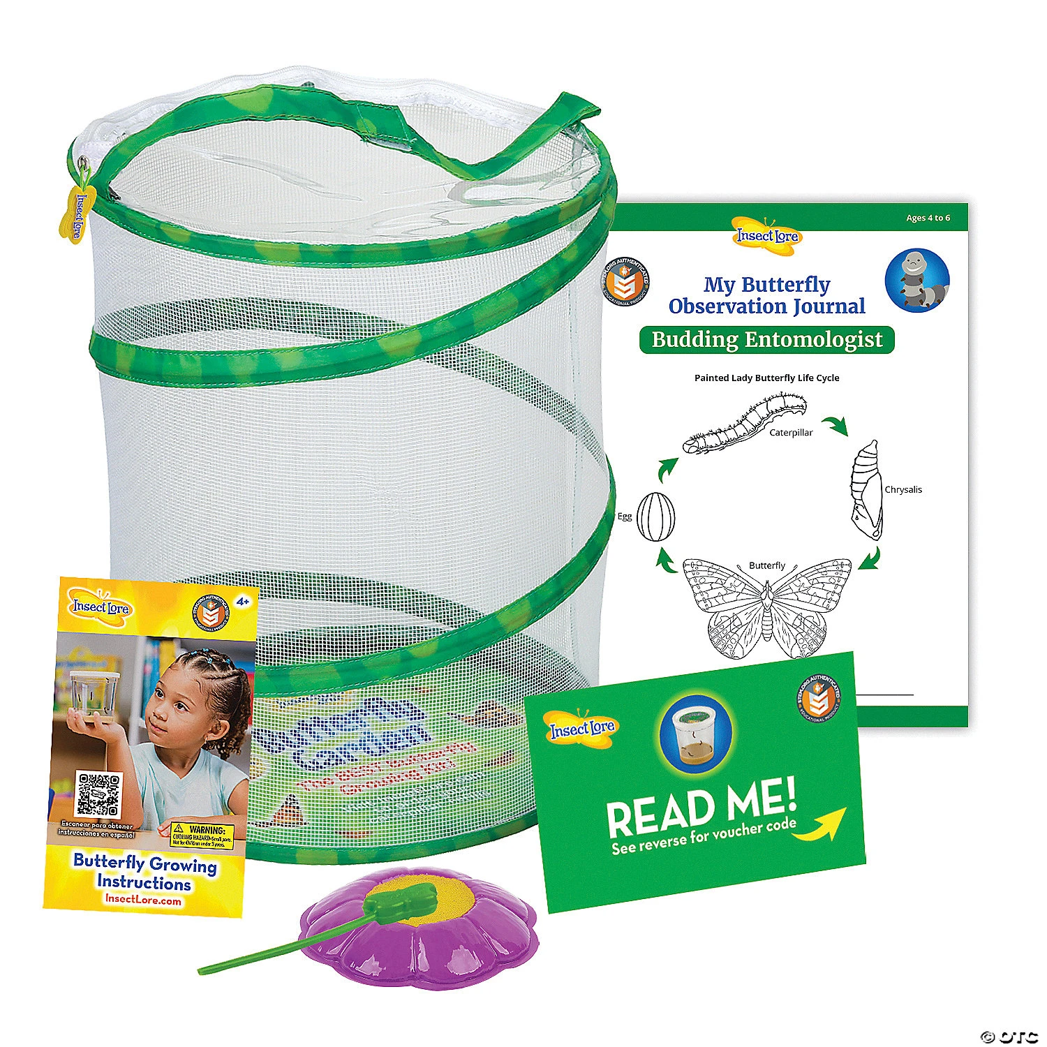 Learn about the miracles of metamorphosis as you watch caterpillars change into chrysalides and then adult Painted Lady Butterflies in 3 to 4 weeks. The Butterfly Garden includes a specially coded voucher for 5 Painted Lady Caterpillars (allow 2-3 days for delivery). Feed your butterflies sugar water or orange slices and then release them into your backyard in temperatures above 55 degrees Fahrenheit. Butterflies available only in the Continental USA and Alaska; requires an additional $7.95 for 2-3 day express delivery.• A beautiful introduction to science for kids• Photograph the butterfly transformation for school science projects• Redeem your voucher online for quick shipment of butterfly larvae – requires an additional $7.95 for deliveryOnly at MindWare, you’ll receive a FREE set of Butterfly Life Cycle Stages Figurines ($9.99 value) as our gift with purchase!