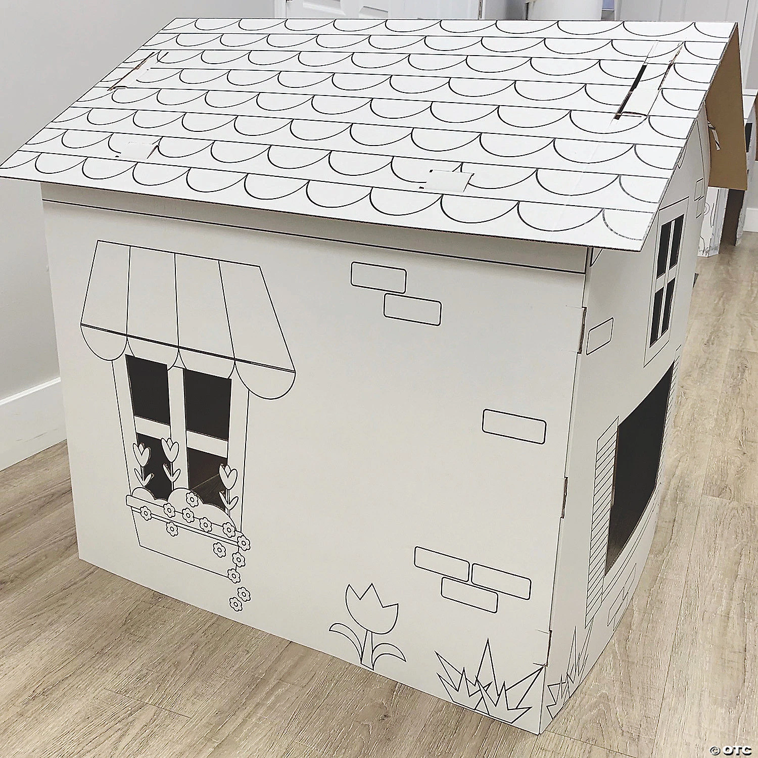 Build up the fun with this large kids craft! This playhouse says “WELCOME” on the door and has cute flowers at the windows and around the base. Use your own markers or crayons to color it in, then assemble it and get ready to play house! Cardboard. 26″ x 34″ x 36″ Assembly required.Special Shipping Information: This item ships separately from other items in your order. This item cannot ship to a P.O. Box. This item may be subject to additional processing days.• ITEM IS NOT ELIGIBLE FOR EXPEDITED SHIPPING.