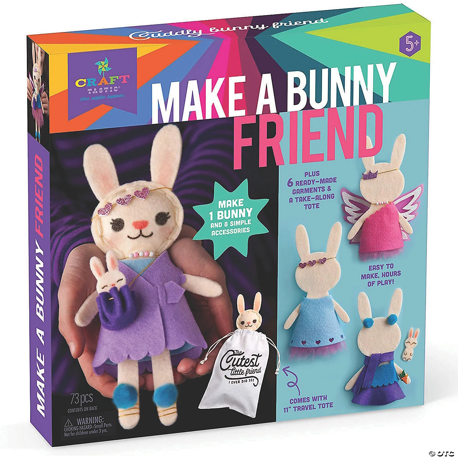 Kids will sew a cuddly bunny friend all by themselves with this kit. After you create the stuffed bunny, dress her up with the accompanying 6 ready-made garments and accessories. Sewing is a wildly popular life skill, and this project is one you can actually be proud of! Every kid loves a sweet stuffy, and if it’s handmade, it’s even more special. You can even take your bunny friend on new adventures in accompanying travel tote. Inspire your child to explore an incredible hobby in this project designed for success.• Supplies and instructions to make 1 bunny stuffy and 8 accessories• Inspires creativity and problem-solving, teaches sewing skills• Tote is 11″