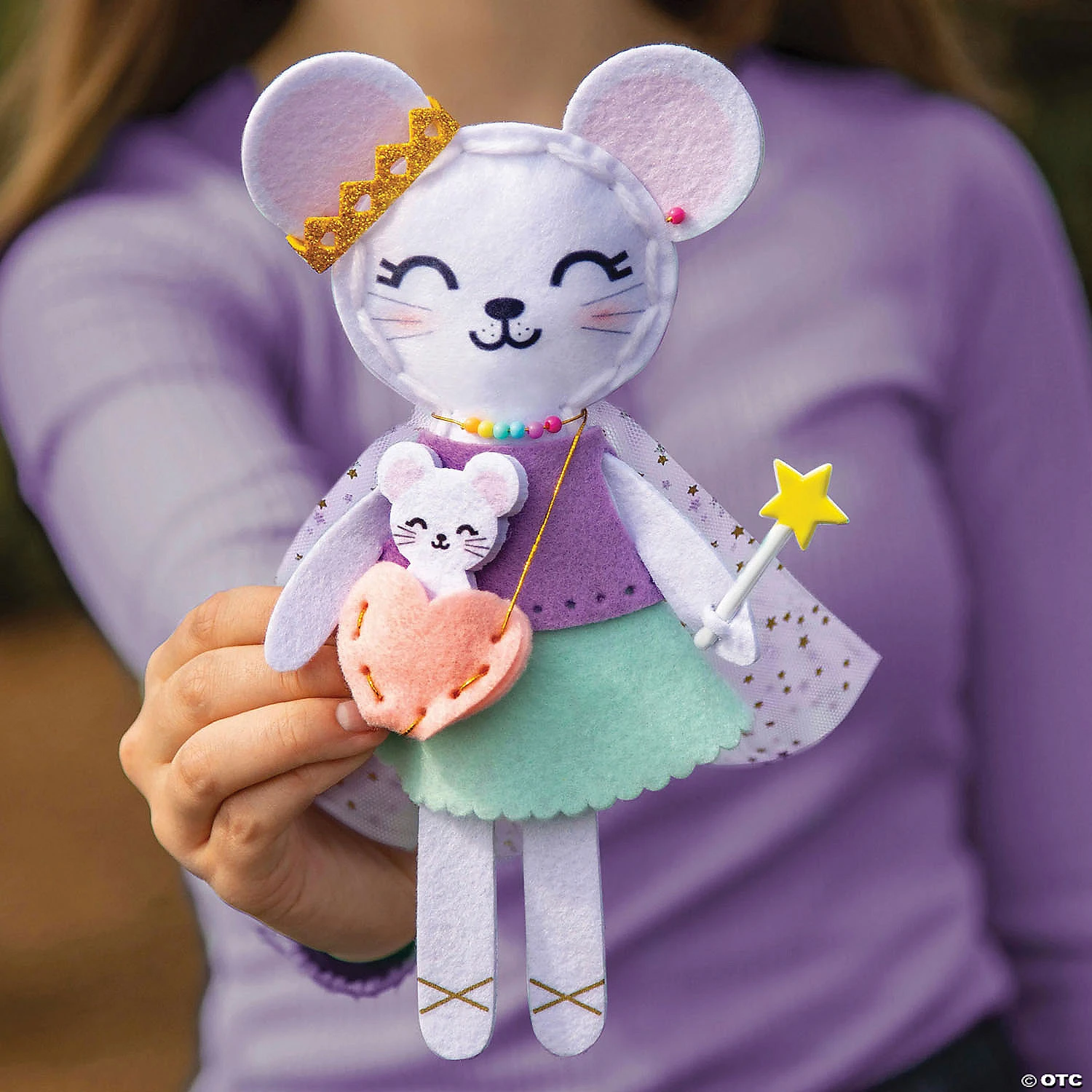 With this kit, kids can stuff and stitch their own cuddly mouse pal! When the craft is complete, dress your new friend up as a royal, superhero or something else entirely, using five ready-made garments and fun accessories like a crown, necklace and more. The 11” travel tote is ready to carry your mouse friend along to any adventure. Warning: cuteness overload ahead! • Craft-tastic Make a Mouse Friend Craft Kit has everything you need to make and dress up one mouse stuffie!• Simple, cute and cuddly craft that’s perfect for kids• Develops fine motor skills, self-confidence, creativity and patience• Includes 1 drawstring bag, 14 plastic beads, 13 felt pieces, 1 puffy sticker, 1 glitter foam sticker, 8 glitter foam pieces, 1.5 yds (1.37 m) of acrylic yarn, .4 oz (11.3 g) of polyester stuffing, 1 plastic needle, 2 pieces of printed tulle, 3 yds (2.7 m) of elastic cord, 5 ready-made garments, 9 simple accessories and instructionsAge Recommendation: Ages 4 and up