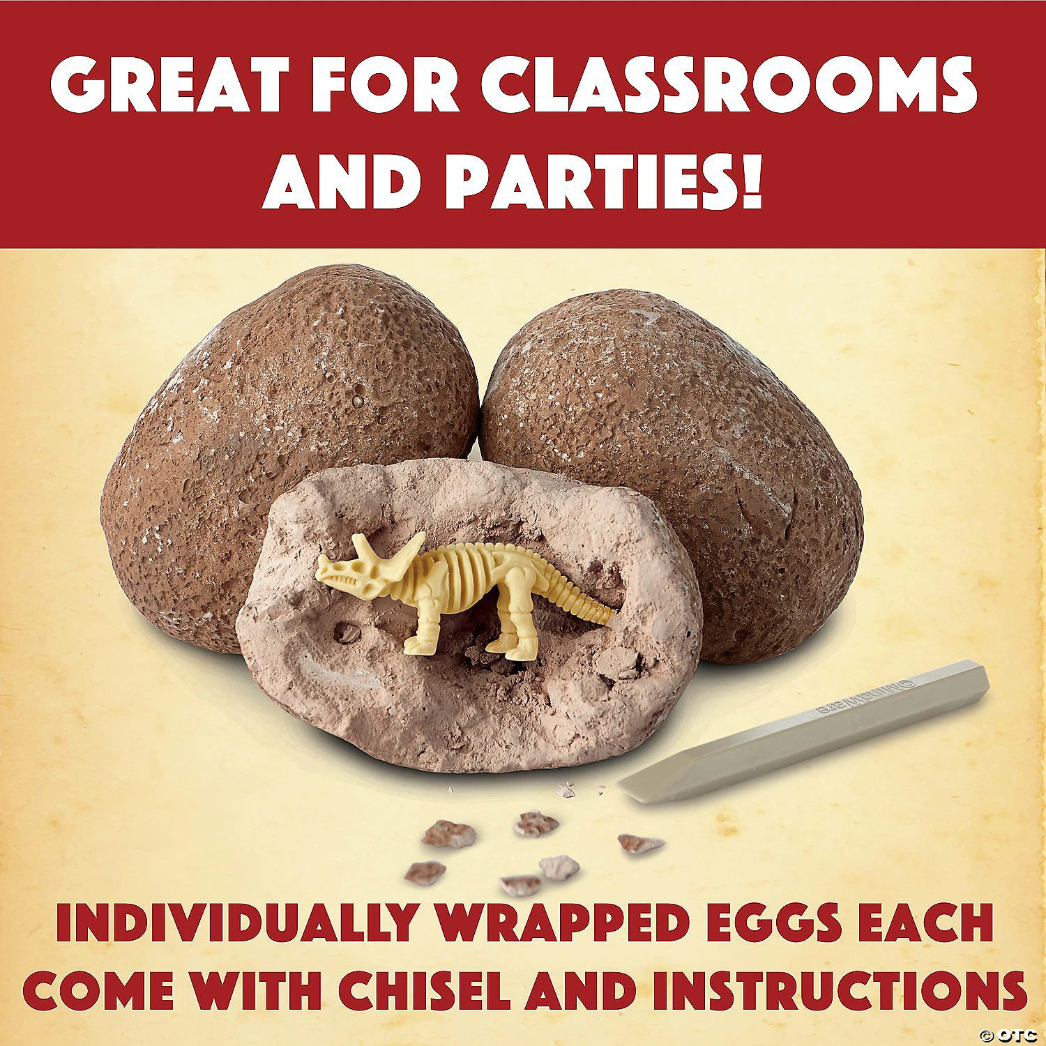 Bring home the mystery and excitement of a paleontological dig! Dig It Up! Discovery packs include 12 individually-wrapped dig projects, each with its own chiseling tool and instructions, making it the perfect excavation kit for a classroom or party! Just soak each 3″ clay egg in water, then chisel away to discover your unique find. Check the included excavation guide for fun facts about your finds, plus extra activities!This kit includes:Excavate dino skeletons with Dig It Up! Dinosaur Skeletons and learn more about each prehistoric reptile!FREE Dig It Up! Excavation Kit: add to the adventure with these tools based on real paleontologist instruments – includes a hammer, chiseling tool, brush, sponge and magnifying lens, plus an excavation mat for quick and easy clean up!• Experience the thrill of discovery with 12 dig-and-discover projects per kit!• Each clay pod contains a different prehistoric dinosaur skeleton toy• A hands-on lesson in science and the natural world for kids• Excavation guide includes exciting information about dinos and activities to do with your dino bones toys• Perfect for a group or party activity!