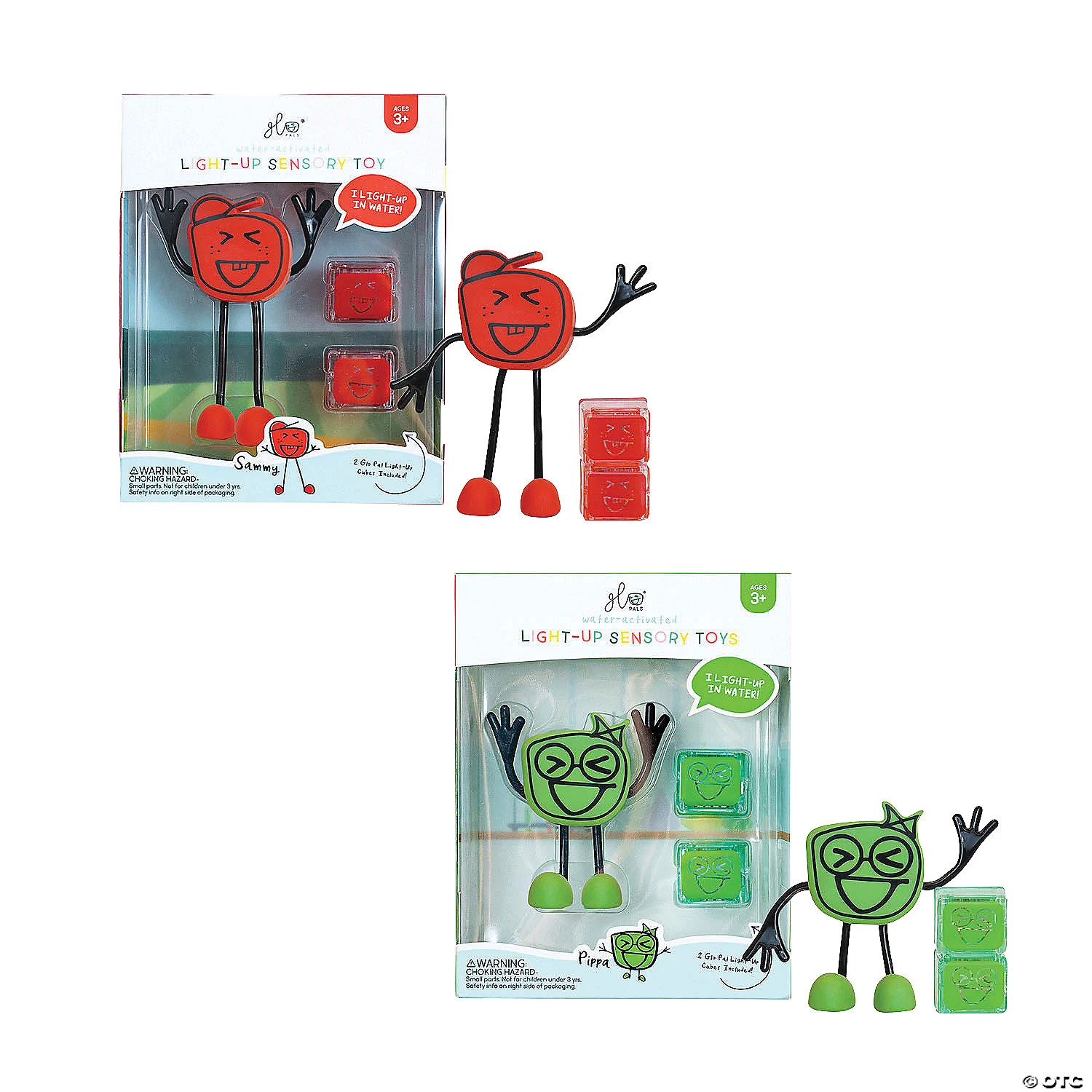 Brighten bath time with these cubes that light up when you drop them in water! These light-up friends make a fun bath toy, or play with them in the pool, sink, water table or bowl of water for sensory stimulation no matter where playtime takes you. With batteries that are sealed inside for safety, children as young as 3 can delight in watching these cubes shine bright red and green colors. Turn the lights out to really highlight their glow!Includes:Sammy Glo Pal: The MVP of playtime, Sammy (a.k.a. “Slanky” due to his long, lanky legs) can be a bit clumsy, but he still wins our hearts. He loves running fast, playing sports and scoring big bath time fun with his glowing red light!Pippa Go Pal: The smallest of the Glo Pals, friends sometimes call her “Pipsqueak,” but she doesn’t mind because she knows that great things come in small packages. The only thing she loves more than getting lost in a good book or playing with animals is spending time with friends like you!• Glo Pals shine a light on fun water play while helping to ease sensory overload!• Develops cognitive skills, color recognition and fine motor skills• Every purchase supports Batson Children’s Hospital. • Mom’s Choice Awards Gold Recipient • Autism Live Top Sensory AwardAge Recommendation: Ages 3 years and up
