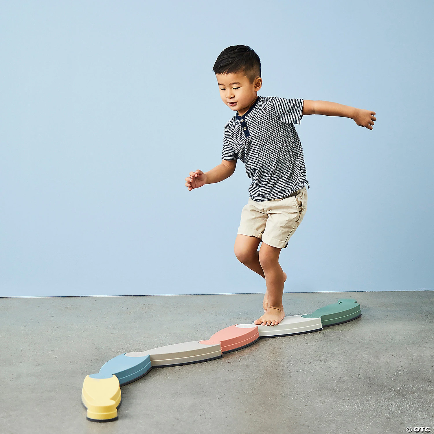 River provides unlimited possibilities for building balance paths! The elements are easy to join and very flexible, so only the imagination sets limits to the course of the river. Due to the size of the elements even small children will be able to build a “river”. Made from durable plastic with anti-slip rubber edges, the river combines high quality with attractive design. The elements are stackable for easy storage. Each set includes 6 river tiles and 1 connector. River Tiles: 13.97″L x 4.52″W x 1.77″H, Connector: 6.29″L x 3.34″W x 1.77″H.