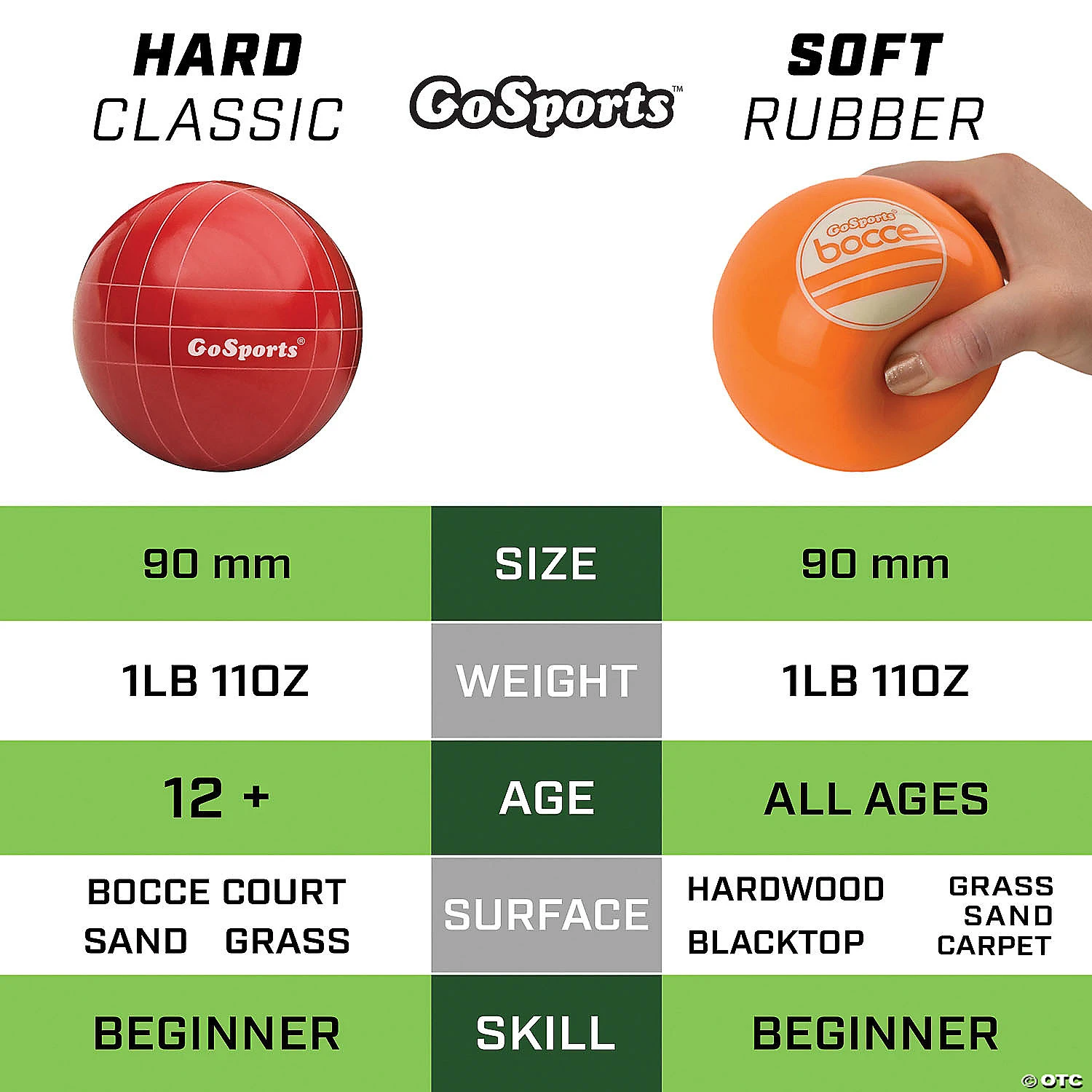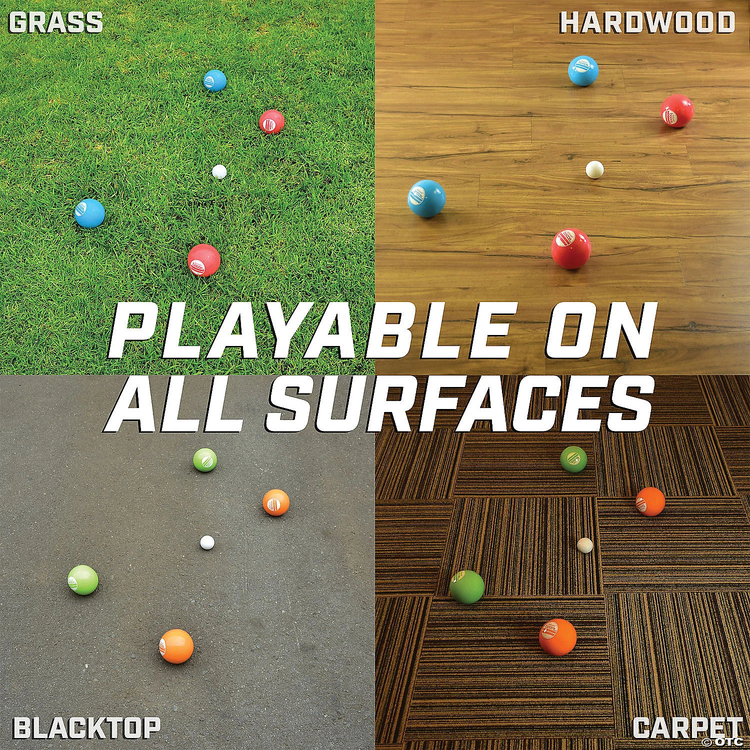 The GoSports Soft Bocce Set was designed to take all the fun of regular bocce and allow players to play indoors! The balls are weighted the same as regular bocce balls, but their soft surface allows them to be played on any surface. The balls roll slightly when thrown, but will not harm the floor or roll for miles like traditional balls. The full set includes 8 balls (4 pairs of colors) so games can be played with 2-8 players. Games can be played on any surface including grass, concrete, cement, hardwood floors, gyms, carpeted floors and more. The soft balls are also safer for younger players. Join the fun today with the GoSports Soft Bocce Set! Includes 8 Weighted Balls, Pallino and Case. Play Indoors or Outdoors!Special Shipping Information: This item ships separately from other items in your order. This item cannot ship to a P.O. Box. This item may be subject to additional processing days. ITEM IS NOT ELIGIBLE FOR EXPEDITED SHIPPING