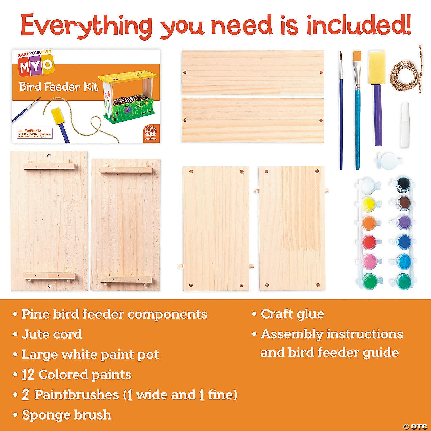 This bird feeder’s ease of assembly makes it a great option for boosting DIY building basics and fine motor skills. Young builders can put it together on their own or by working together as part of a class science project or family activity. Then set them loose with the included paints and let their imaginations run wild as they decorate their creation! Once the paint is dry, hang the bird feeder outdoors and use the included guidebook to learn what seeds you can use to attract different birds. What a great way to learn about and care for local birds! Includes 6 wood bird feeder pieces, twine for hanging, craft glue, 13 paint colors, 3 paintbrushes and instructions.• Make Your Own Bird Feeder kits make fun and easy gifts for others year round• Strengthens creativity, fine-motor and design skills• Assembed birdfeeder measures 9″ x 5″ x 7″• All materials included