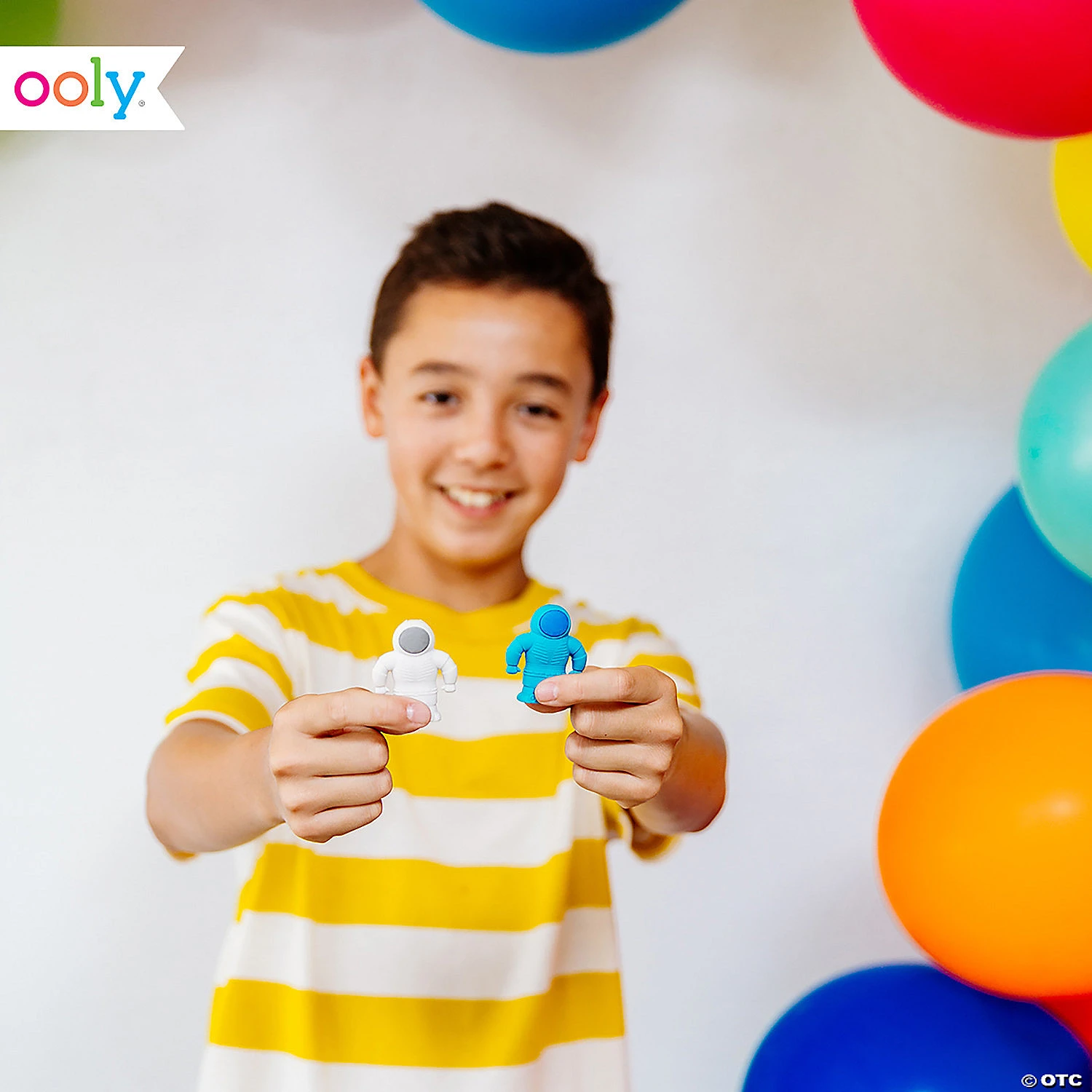 Countdown to blasting your mistakes off into outer space with these far out novelty erasers! These 3 outer space erasers are your adventure buddies into the mind-opening space of creativity! This team of intergalactic astronaut pencil erasers are perfect in space, at home or at school. Includes three astronaut shaped erasers in blue, green and white.• 3 astronaut shaped erasers• Blue, green and white colors• 1.75″ tall