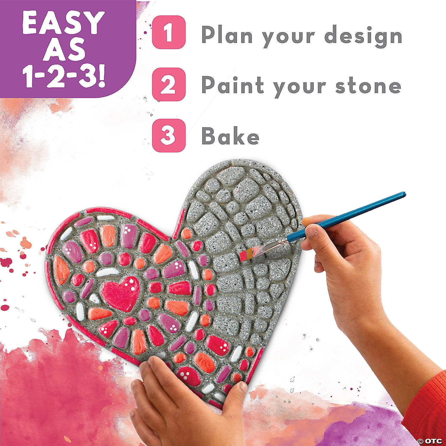 This all-weather stepping stone is ready to paint right out of the box, letting you skip messy cement-mixing and get right to the fun part: decorating and personalizing! A dozen vibrant paints allow for endless creativity—mix, blend and add custom color accents. Once painted, bake the stone in your oven for a long-lasting, weather-resistant finish. Display one stepping stone or make a whole pathway to transform your garden, backyard or patio! Kit includes a 9.5″ x 9″ cement stepping stone, 12 paints, a paint brush and instructions.• Decorate your outdoor living space• Develops creativity, hand-eye coordination and color mixing skills• Weather-resistant finish once baked• 9.5″ x 9″ cement stepping stone, 12 paints, a paint brush and instructions• Printable color planning template