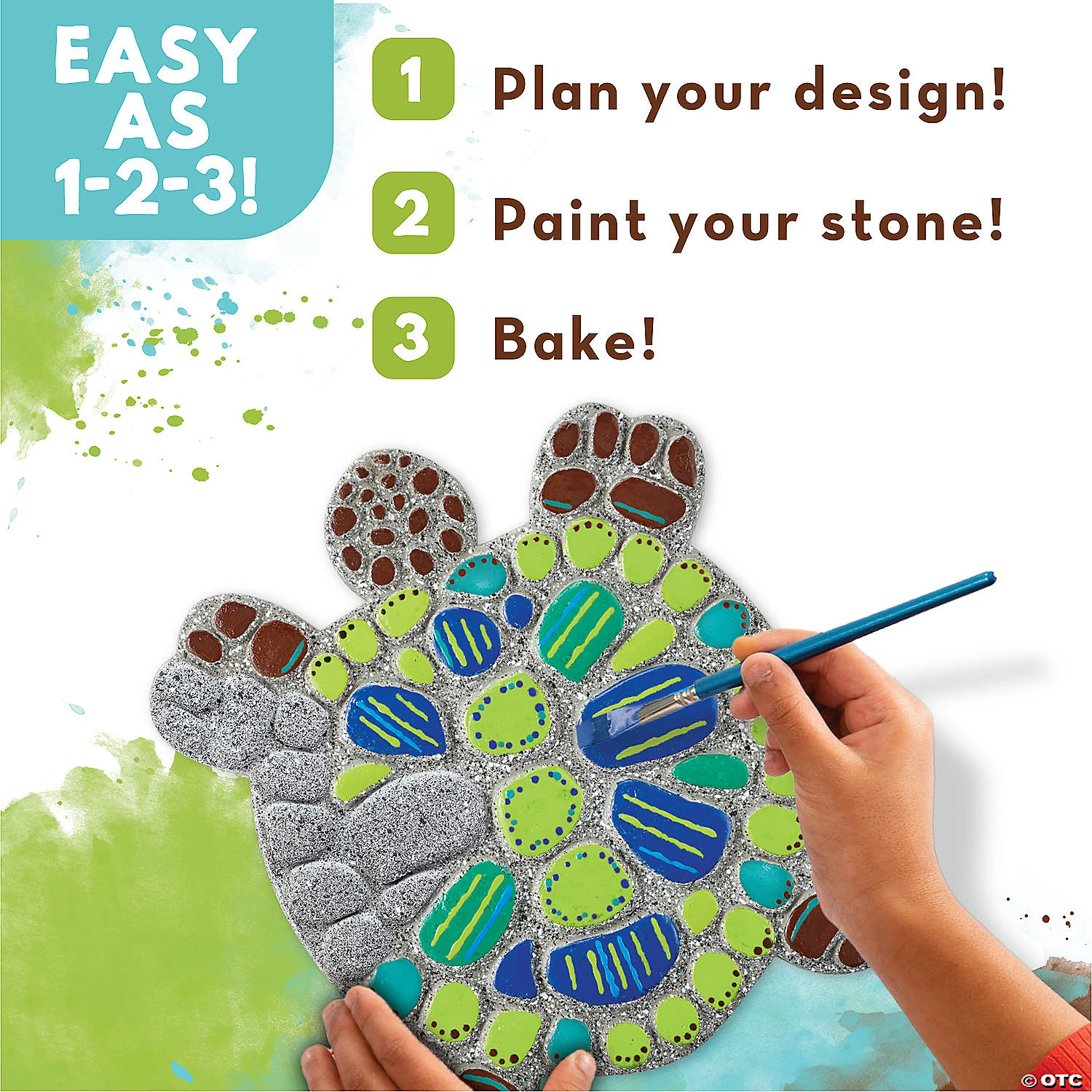 This all-weather stepping stone is ready to paint right out of the box, letting you skip messy cement-mixing and get right to the fun part: decorating and personalizing! A dozen vibrant paints allow for endless creativity—mix, blend and add custom color accents. Once painted, bake the stone in your oven for a long-lasting, weather-resistant finish. Display one stepping stone or make a whole pathway to transform your garden, backyard or patio! Kit includes a 10″ x 9″ cement stepping stone, 12 paints, a paint brush and instructions including.• Decorate your outdoor living space• Develops creativity, hand-eye coordination and color mixing skills• Weather-resistant finish once baked• 10″ x 9″ cement stepping stone, 12 paints, a paint brush and instructions• Printable color planning template