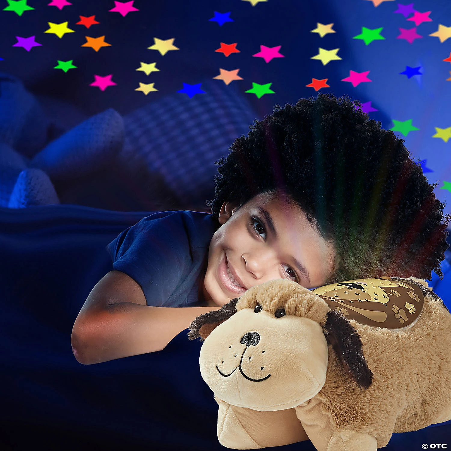 Pillow Pets presents this cute plush that shines colorful rainbow stars onto your ceiling! This Sleeptime Lite starts out as a fun pal to play with and then becomes a soothing nightlight. Easily turn your child’s bedroom ceiling into a starry night sky with the touch of a button. The Sleeptime Lite projects rainbow color lights that can be set to change slowly or quickly. It also has a built-in timer that will automatically shut the light off after 20 minutes, giving little ones enough time to drift off to sleep.CUTE PUPPY: When it’s time to snuggle up in bed, turn on the Snuggly Puppy Sleeptime Lite for a soothing light projection and a loyal friend to keep at your bedside.NIGHTTIME COMPANION: Pillow Pets presents super cute, soft, & adorable stuffed animals that project colorful stars at night. Toddlers, kids, teens, & adults love classic & collectible critters.STARRY COMFORT: This plush is a pal during the day and a soothing light projector at night! It’s a comforting travel friend for any child on road trips & airplanes. Also use as boy & girl bedroom decoration.BEST BUDDY: Children of all ages will love this original toy for play & as a companion for reading, watching television, studying, and sleepy nap time. Youth love to read with this cozy creature.SPECS: Official Pillow Pets item. The softest and highest-quality plush. BPA & Phthalates free. Size: 11in. Surface wash only. Projects light with 3 color modes and 20 min timer. Ages 0+. Special Shipping Information: This item ships separately from other items in your order. This item cannot ship to a P.O. Box. This item may be subject to additional processing days. ITEM IS NOT ELIGIBLE FOR EXPEDITED SHIPPING You may initiate a return for unused items within 30 days, if the items are in original packaging with all original materials included with the shipment.