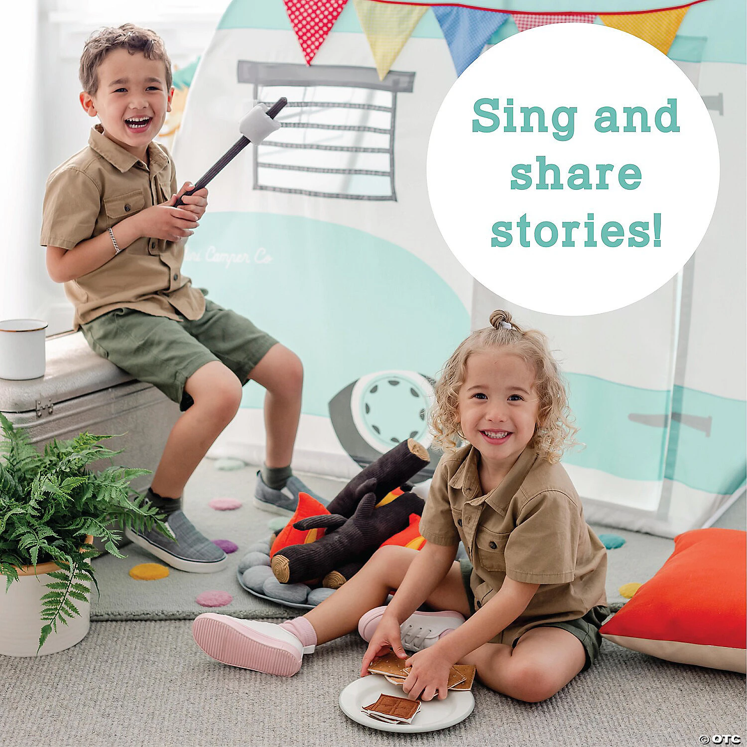 Get ready for a pretend camping trip in your own room! No matches required – just your imagination. With this plush campfire set, you can enjoy singing around the campfire, “roasting” pillowy marshmallows and stuffing them into plush s’more bites – all without leaving home. The super-soft design is crafted from polyester, making it easy to spot clean. This beautiful addition to your indoor play toys is sure to be a kid favorite.• Adorable Plush Campfire Set – perfect for your little adventurer to enjoy a camping experience indoors!• Engages imagination, creativity and pretend play • Durable, long-lasting and easy to spot clean• Create a full camping experience with the Tree Stump Pouf and Mini Camper Playhouse (sold separately)• Campfire is 19.5” tall• Includes 1 stuffed rock pit, 3 stuffed flames, 5 soft logs, 2 roasting sticks, 2 plush marshmallows, 4 play cookie grahams, and 2 pretend chocolate barsThis item ships alone in its own packaging that may reveal its contents.