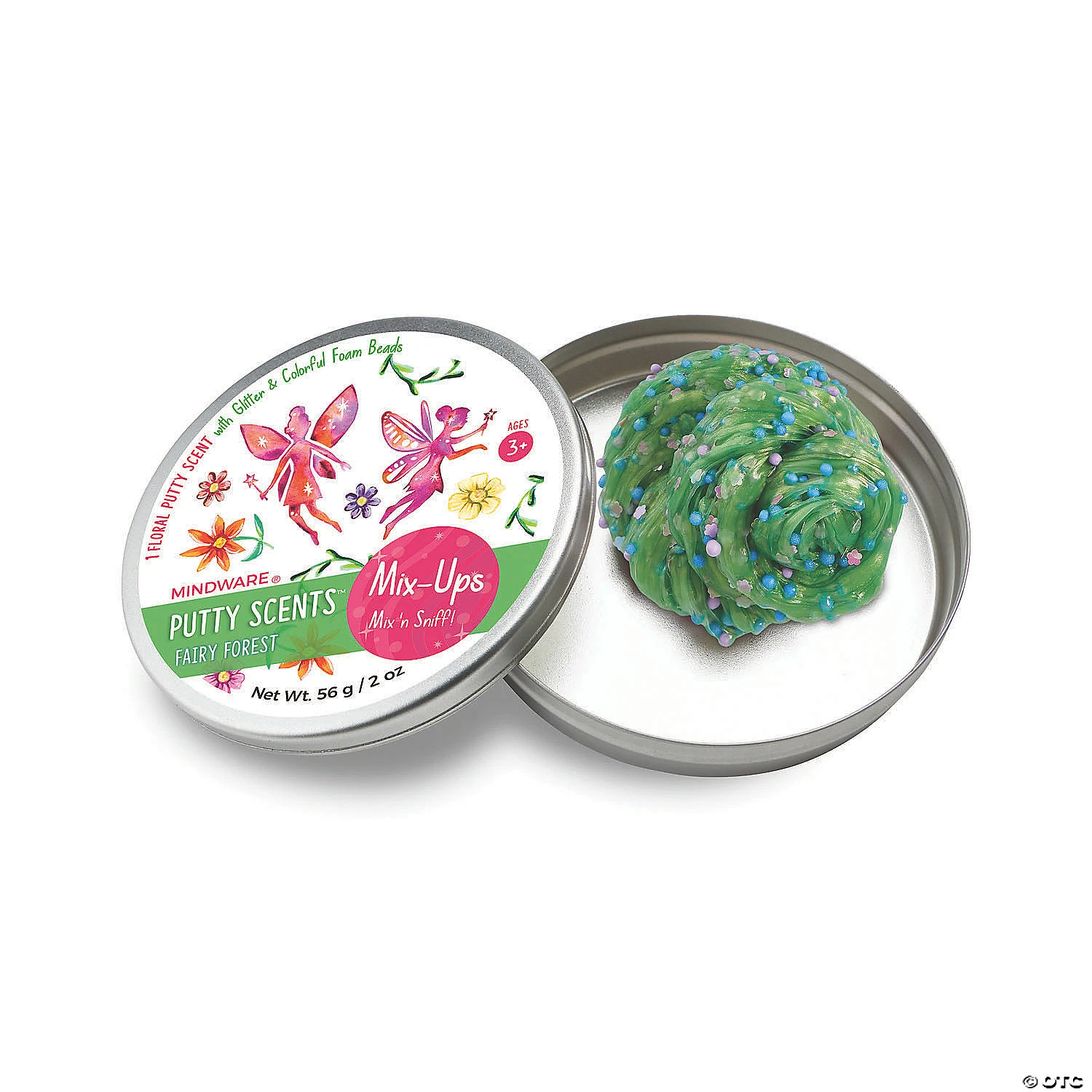Putty Scents MixUps is a unique line of scented putty with a crunchy texture that pops and crackles when it stretches! With Fairy Forest putty, you’ll combine colorful foam beads with floral-scented glitter putty to make your custom sensation that feels like a magical gift from a fairy kingdom. It’s aromatherapy at your fingertips – great for kneading, molding, rolling and stretching!• Fairy-themed, sparkly putty with a customizable texture• High-quality, with cool colors and floral scent• Calming, playful and fun for both kids and adults• Easy to take on the go – the beautiful tin keeps putty from drying out• Gluten free and made from non-toxic ingredients (silicone oil, silicon dioxide, boric acid, pigment & fragrances)• Includes 1 tin with 2 ounces of putty and foam beads in a packet for custom mixing