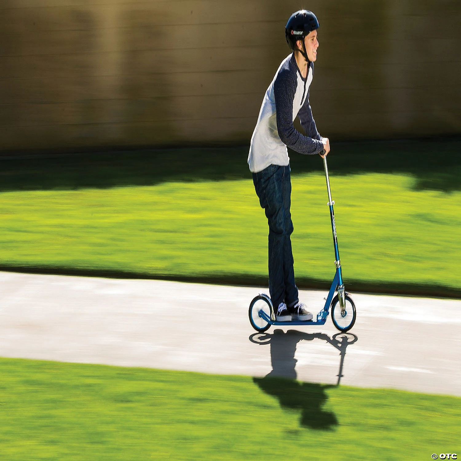 The Razor A5 Lux Kick Scooter provides a smooth ride and hours of outdoor entertainment for users ages 8 years and up. It’s made of super-durable aircraft-grade aluminum t-tube and includes a wide deck that easily supports riders up to 220 lbs. This Razor adult kick scooter requires no assembly and is ready to ride straight out of the box. When not in use, simply fold it up for easy transportation and storage. Its oversized urethane wheels allow you to gain speed easily, especially when riding downhill or downslope, and they also ensure a smooth ride. Its rubberized handles keep your hands comfortable, especially during extended use. It’s ideal for young kids, teens and adults.• Extra-large, urethane wheels provide a super-smooth and comfortable ride.• Super-strong, height adjustable, aluminum T-tube and larger deck supports taller riders.• Anodized finish features bold colors and attention-grabbing graphics.• Easy-adjust handlebars include soft foam grips for enhanced comfort.• Patented rear-fender brake makes for quick and easy slow and stop when in motion.• Retractable kickstand can be kicked forward or back easily and when resting provides a stand for parking the scooter.• Light to carry and an ideal companion as a short commute kick scooter.• Quick use folding mechanism allows for fast and easy storage.• Aircraft-grade aluminum t-tube• Deck that comfortably supports riders up to 220 lbs• Extra-large urethane wheels• Easy to fold and carry• Built for larger riders• No assembly is required• Age range: 8 years and up Special Shipping Information: This item ships separately from other items in your order. This item cannot ship to a P.O. Box. This item may be subject to additional processing days. ITEM IS NOT ELIGIBLE FOR EXPEDITED SHIPPING