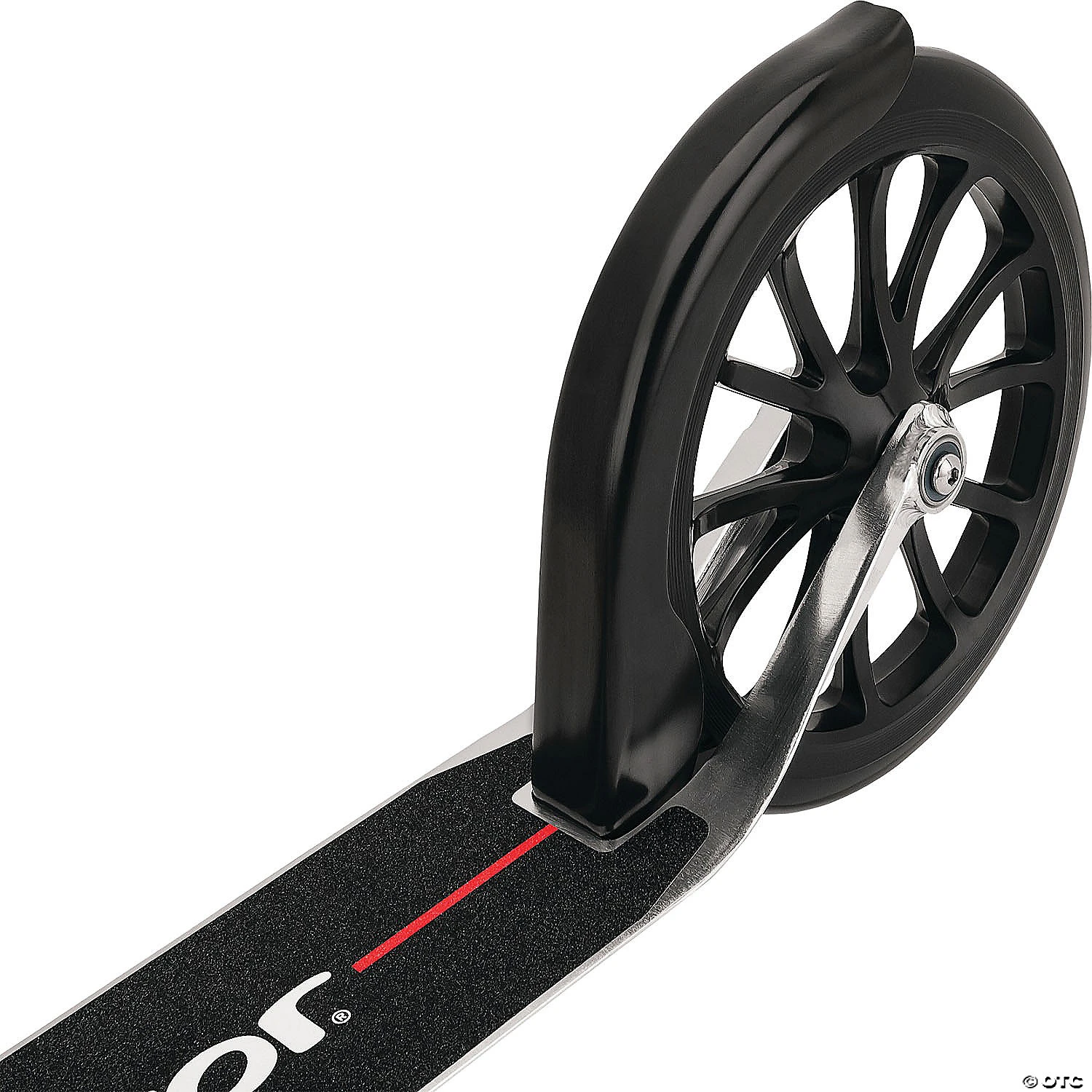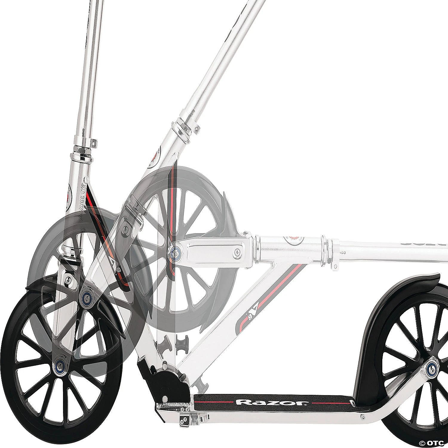 Designed and constructed for taller riders, the Razor A6 takes riding to new heights. No more hunching over handlebars, it’s time to ride tall and stand proud! The super-strong, aluminum frame and extra-long deck with added foot room are built for durability and riding comfort, so you’re never too tall to ride. The A6 also features ultra-sized, ultra-sturdy,10” (254 mm), urethane wheels, rear-fender brake for effortless stopping power and our proprietary, Anti-rattle handlebar and folding mechanism to ensure the smoothest, quietest ride around. No more rattling, so you can enjoy your ride! The A6’s ultra-large fun is designed for riders ages 8 and up weighing up to 220 pounds (100 kg). Featuring Razor’s world-renowned, quality construction, the A6 is the kick scooter taller riders have been waiting for.• Features Razor’s tallest handlebars, adjustable up to an incredible height of 42” (1067 mm), and extra-long, 13.4” (340 mm) deck for more foot room.• Spoked, ultra-large 10” (254 mm), urethane wheels and super-strong, aluminum frame with patent-pending, anti-rattle handlebars• Folding mechanism ensure the smoothest, quietest ride around.• Rear-fender brake for an effortless, gliding stop.• Designed for riders ages 8 and up weighing up to 220 pounds (100 kg).• Frame: Anodized aluminum• Handlebars: Width16.75” (425 mm), adjustable-height up to 42” (1067 mm) and anti-rattle, folding• Downtube: Patent-pending, anti-rattle, folding mechanism• Deck: Length 13.4” (340 mm)• Wheels: Spoked, 10” (254 mm), urethane with double bearings• Brake: Rear-fender• Kickstand: Retractable• No assembly required• Assembled Product Dimensions:39.4”x16.9”x 42” (1000mm x 428 mm x1067mm)Product Weight:10.98 lb.(5.0kg) Special Shipping Information: This item ships separately from other items in your order. This item cannot ship to a P.O. Box. This item may be subject to additional processing days. ITEM IS NOT ELIGIBLE FOR EXPEDITED SHIPPING