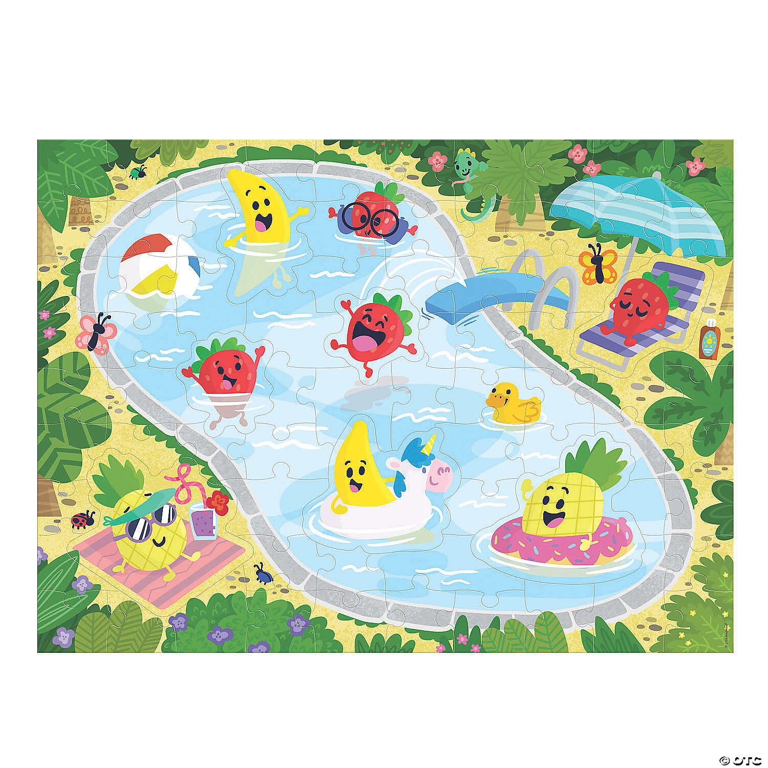 Experience multi-sensory fun with scratch and sniff puzzles! Engaging to put together, the silly final scene is a delight when the puzzle is complete. Create an adorable pool party scene complete with cannon-balling fruit characters in banana, strawberry, and pineapple scents.• Put together a scratch and sniff scene with colorful pieces and sweet scents• Kids learn visual and scent recognition, fine-motor development, problem solving and critical thinking• 77 piece puzzle measures 14″ x 19″ when complete!• Enjoy other scratch-and-sniff puzzles: Jelly Jammers Rock Monsters or Sweet Smells Bakery• 7 Special-shaped scented pieces that include Banana, Strawberry, and Pineapple scents