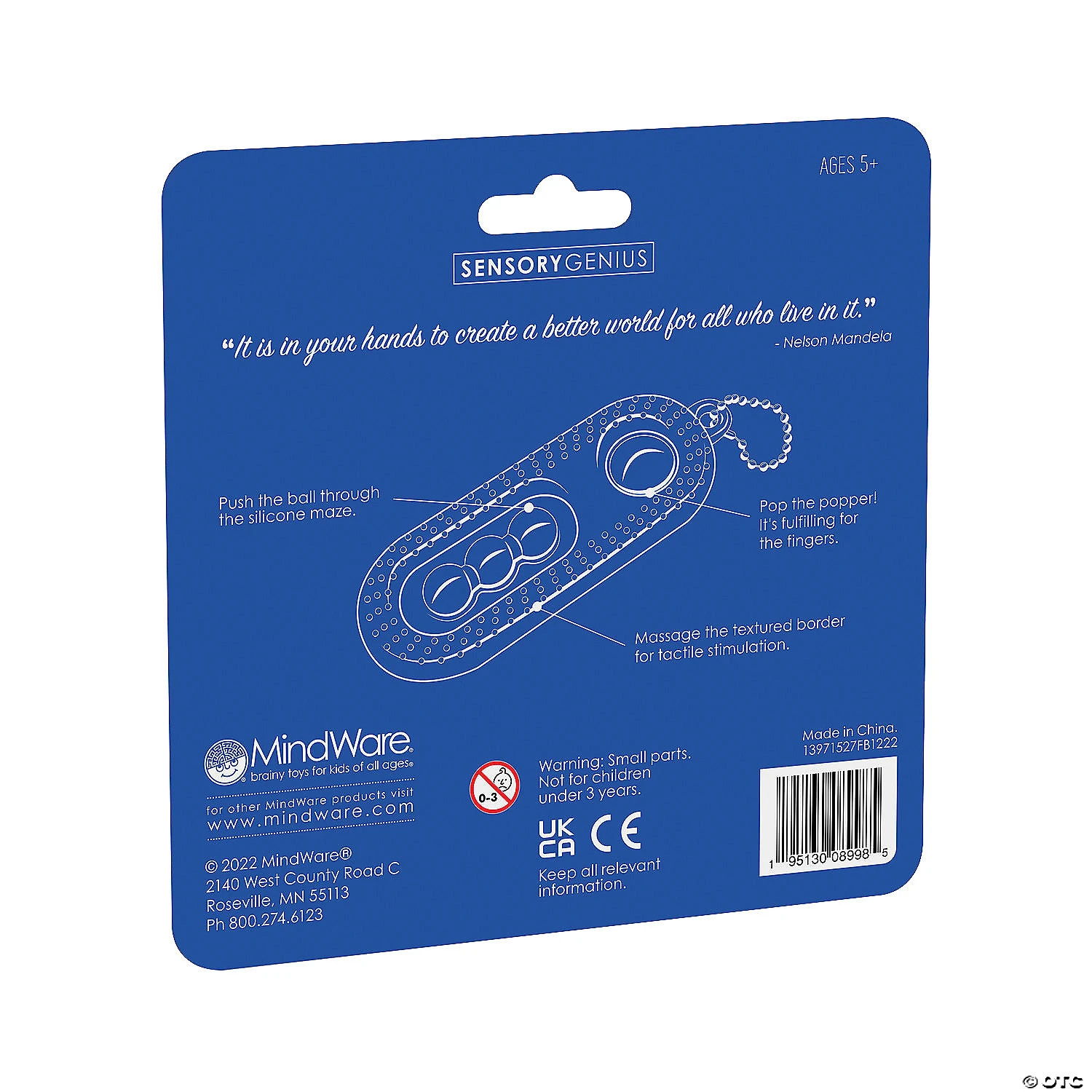 Pop the popper, feel the textured border, push the ball through the silicone maze…the tactile stimulation of this puzzle makes it a top choice for kids and adults alike! • Place on a keychain, backpack or diaper bag• Can be used to improve focus at home, work or school