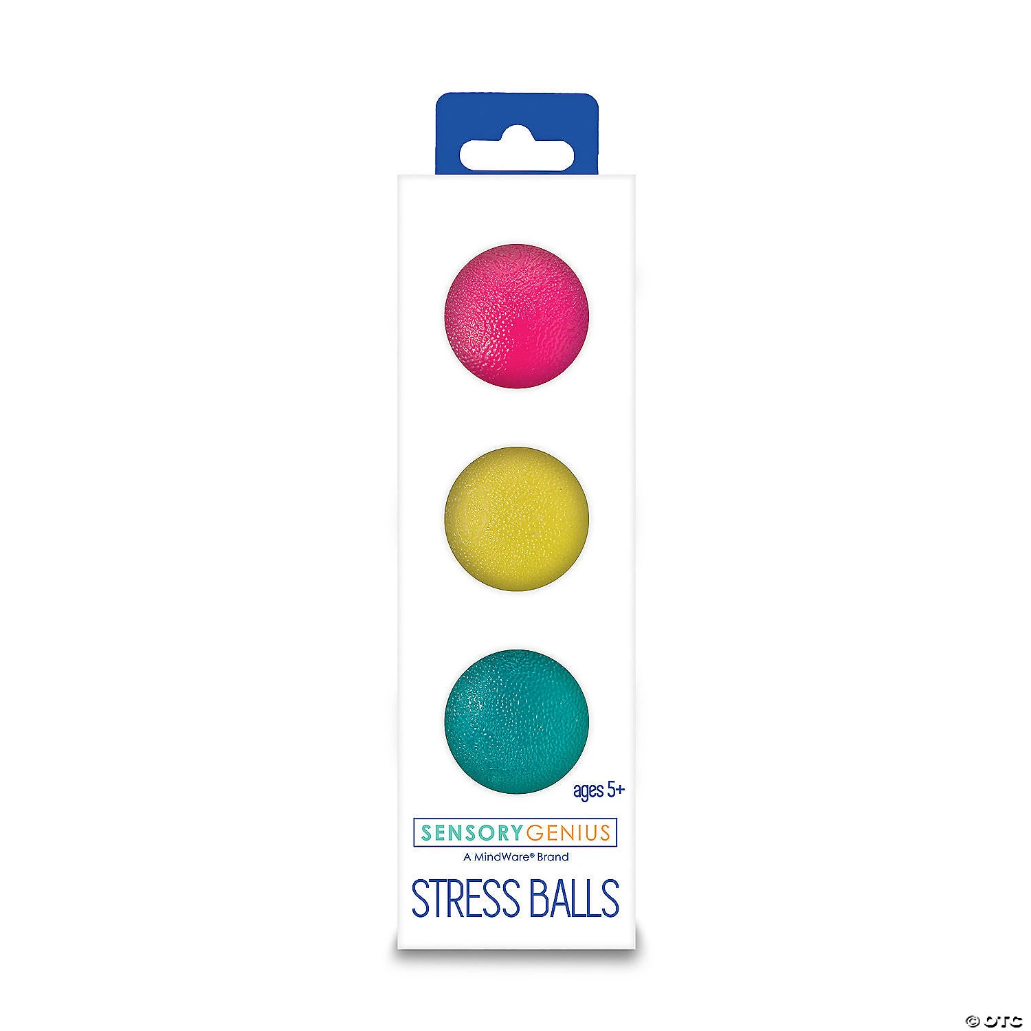 Squeeze your stress away with these lightweight balls with three levels of resistance: firm, soft and squishy. • Great for tactile stimulation and fidgety hands • Encourages fine motor skills • Perfect travel gift