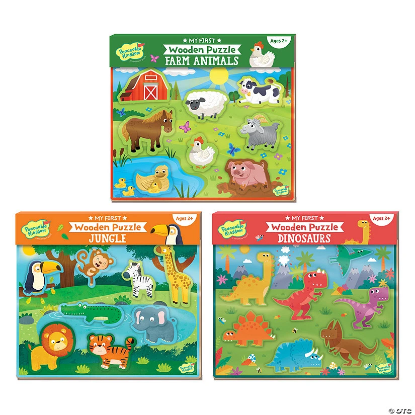Small hands, big fun! These wooden puzzles contain two activities in one for active toddlers. First, they can place the pieces in the correct spot on the puzzles, working on fine-motor skills and shape recognition as they go. Second, the thick, sturdy puzzle pieces in fun animal shapes can be used as standalone toys so kids can let their imaginations run wild and have even more fun!• Thick and sturdy wooden pieces• Colorful and playful designs• Puzzle pieces can stand on their own for pretend play• Learn colors and shape recognition by matching pieces to their correct spotOnly at MindWare, you’ll also receive a FREE Raindrop Forest cooperative game valued at $16.95.Age Recommendation: Ages 3 and up