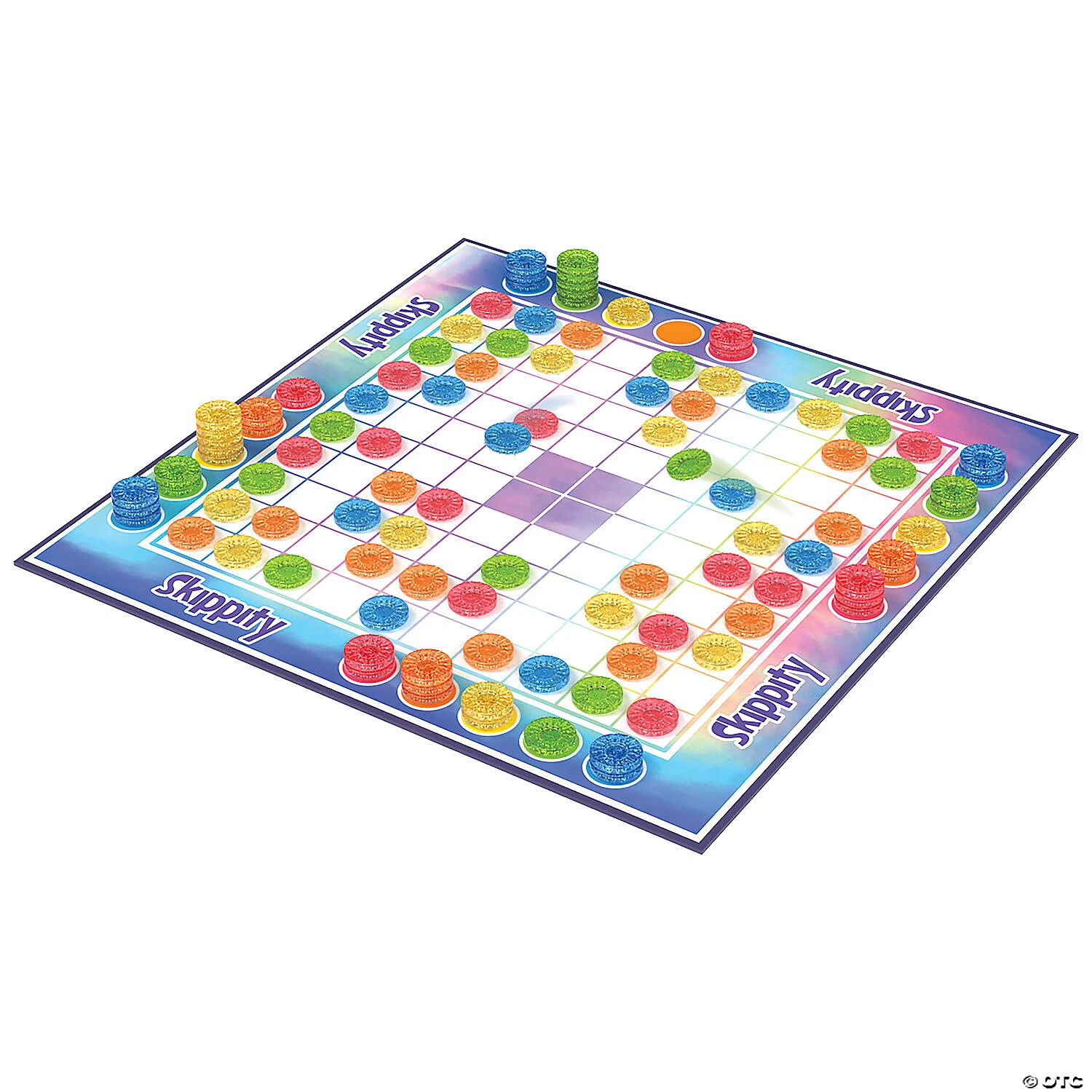 It’s easy to learn and fast to play-kids will jump at the chance to play Skippity. Use straight-line leaps to capture and stack the skippers you hop over. Any skipper can be your jumping piece; they’re all fair game! Capture the colors you need while blocking your opponents from capturing the colors they need. When you have one of each color, its a set. The player with the most complete sets wins. 2 to 4 players. Download Instructions
