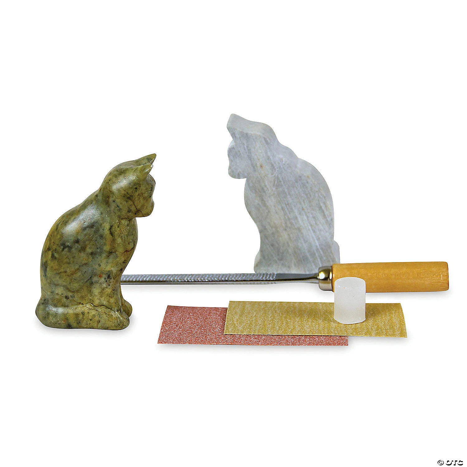 This kit contains everything you need to sculpt a beautiful cat figure from a rough soapstone form, while learning the art of soapstone carving and developing fine-motor skills. Great for budding and experienced artists alike, crafters of all levels can follow the in-depth instructions to carve a display-worthy shape in under 90 minutes. The completed craft is ready to pose pretty on your fireplace mantle, desk or tabletop!• Decorate your home, office or classroom with this DIY stone craft.• Develops creativity, hand-eye coordination and fine motor skills• Includes a hand-cut soapstone shape, kid-safe carving file, two grades of sandpaper, polishing wax, buffing cloth and step-by-step instruction manual.Age Recommendation: Ages 8 and up