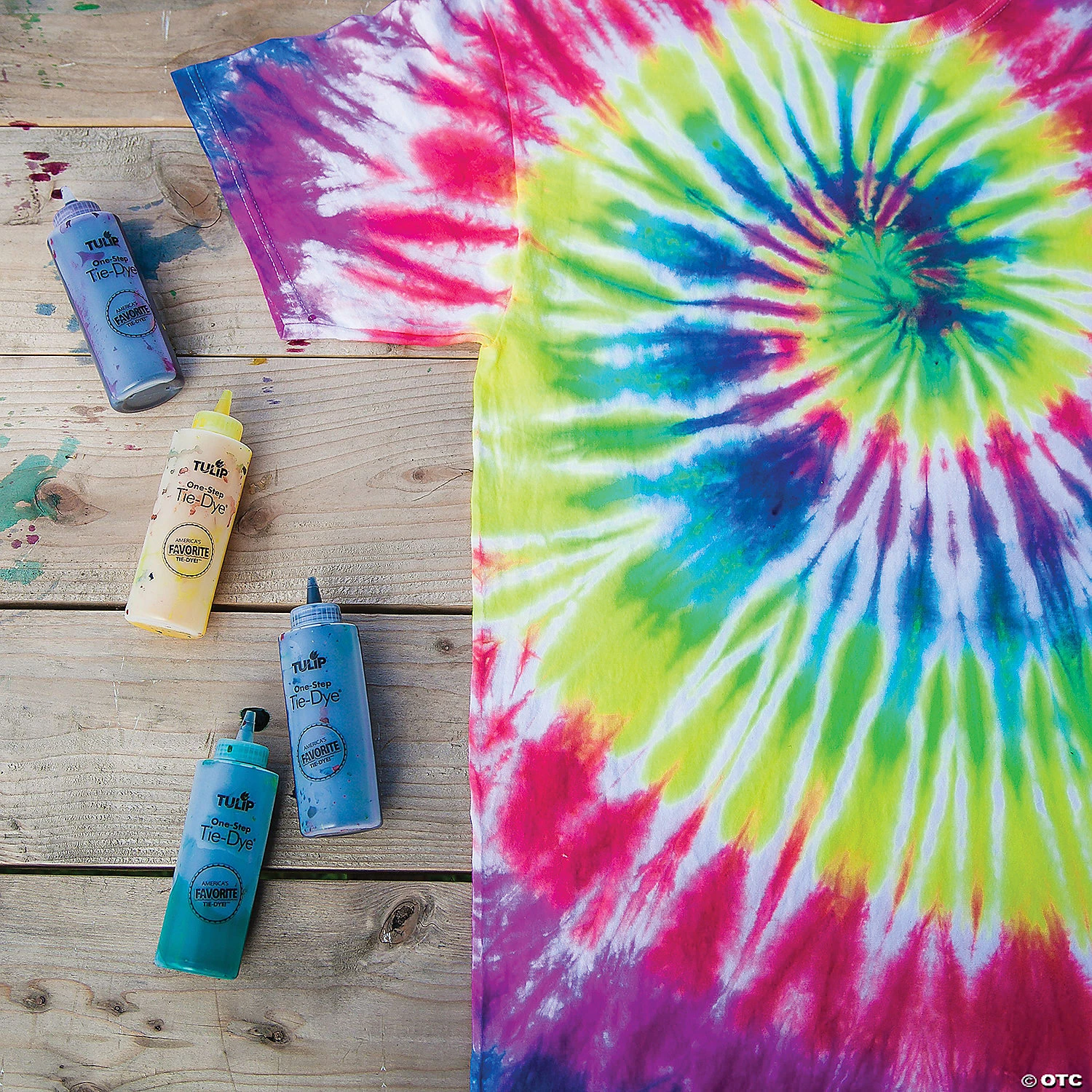 Endless summer fun is here with this all-inclusive Tulip Tie-Dye Party Kit that’s bursting with bold, colorful fun! Fully stocked with 14 vibrant dye colors, gloves, rubber bands, a plastic surface cover and full-color inspiration guide. Best of all, the plastic storage bin keeps everything neat and clean. Just add water, shake and apply for vibrant color that’s safe to machine wash over and over again. Makes up to 36 projects. Contents come in a reusable plastic storage bin.• Includes 18 easy-squeeze bottles of non-toxic, One-Step dyes in 14 colors – just add water to activate• Step-by-step guide features over 8 tie-dye techniques• Use with 100% natural fiber fabrics like cotton, rayon and wool for best results (not included)• A perfect group activity for camps, parties, school and family eventsNote: project count will vary based on size of garment and amount of dye used. Dyes will appear darker on damp fabric prior to washing and will naturally lighten after laundering.Colors included are: (2) fuchsia, (2) yellow, (2) red, (2) turquoise, (1) orange, (1) coral, (1) pink, (1) lime, (1) green, (1) teal, (1) blue, (1) purple, (1) violet and (1) black.